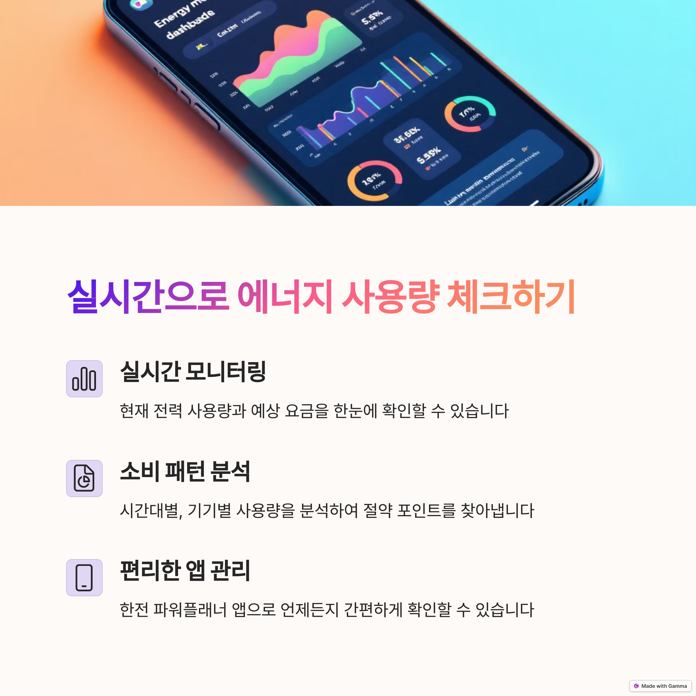 | 에너지 모니터 | 실시간 사용량 확인으로 절약 습관을 유도합니다. |