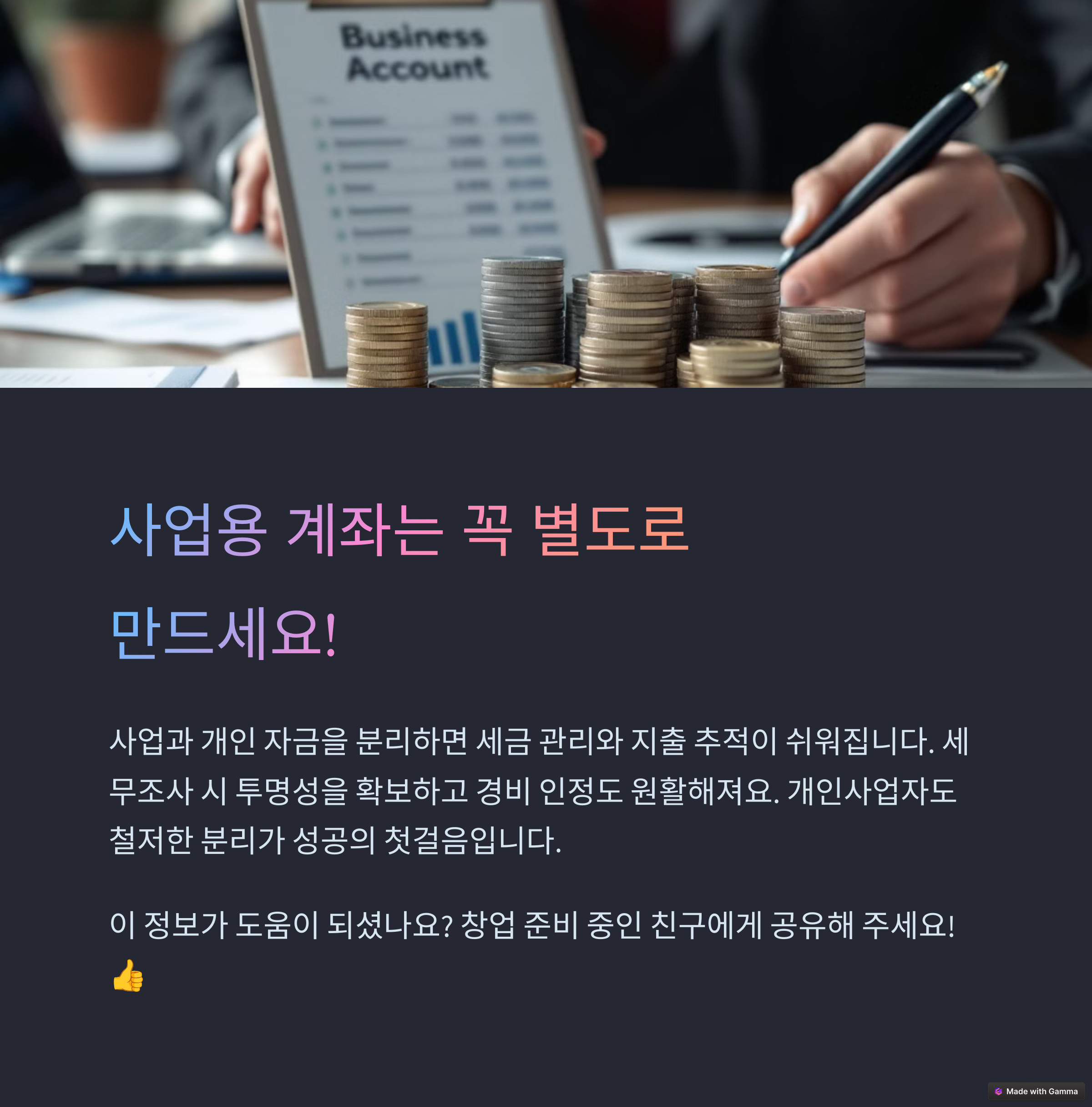 왜냐면 나중에 세무조사나 매출 확인할 때 개인 지출이랑 섞이면 머리가 아파요!
