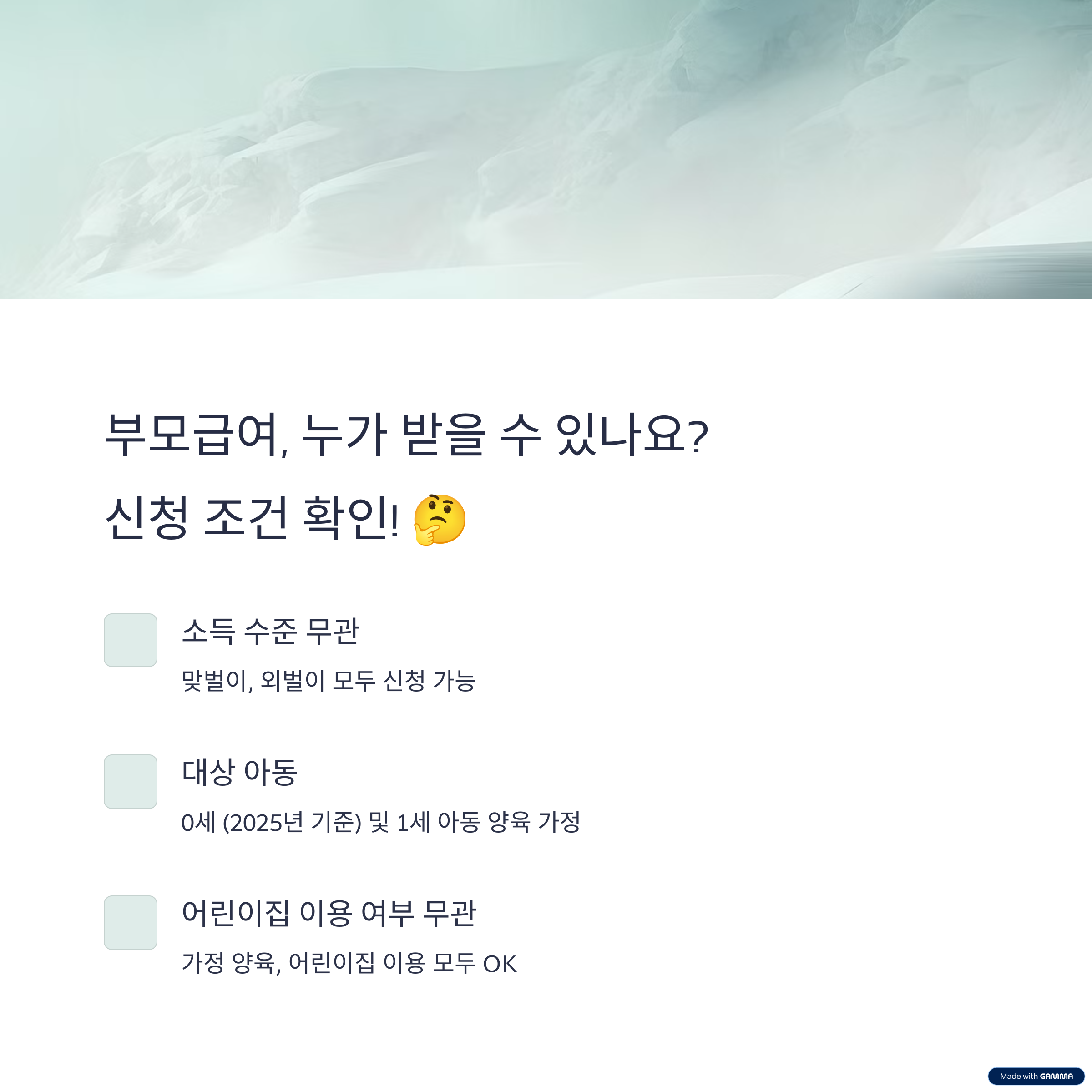 | 부모급여 지원대상 | 0세~1세 자녀를 둔 모든 가정 |