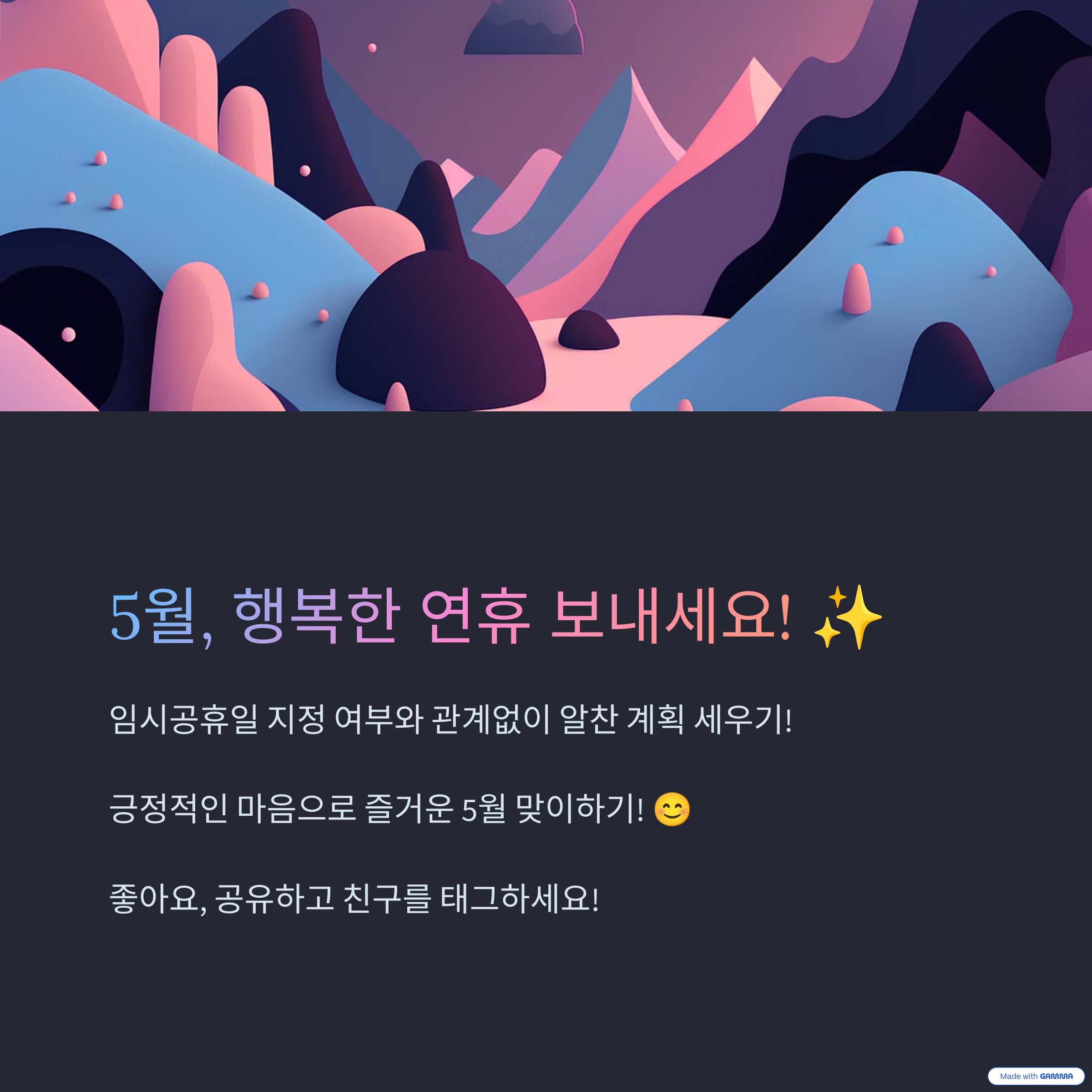 2025년 5월 2일이 임시공휴일로 지정되지 않더라도, 연차 하루로 6일 황금연휴를 만드는 방법은 충분히 가능합니다. 여행 계획은 미리 세우고, 교통 혼잡은 전략적으로 피하면서, 여유롭고 힐링 가득한 국내 여행을 떠나보세요!