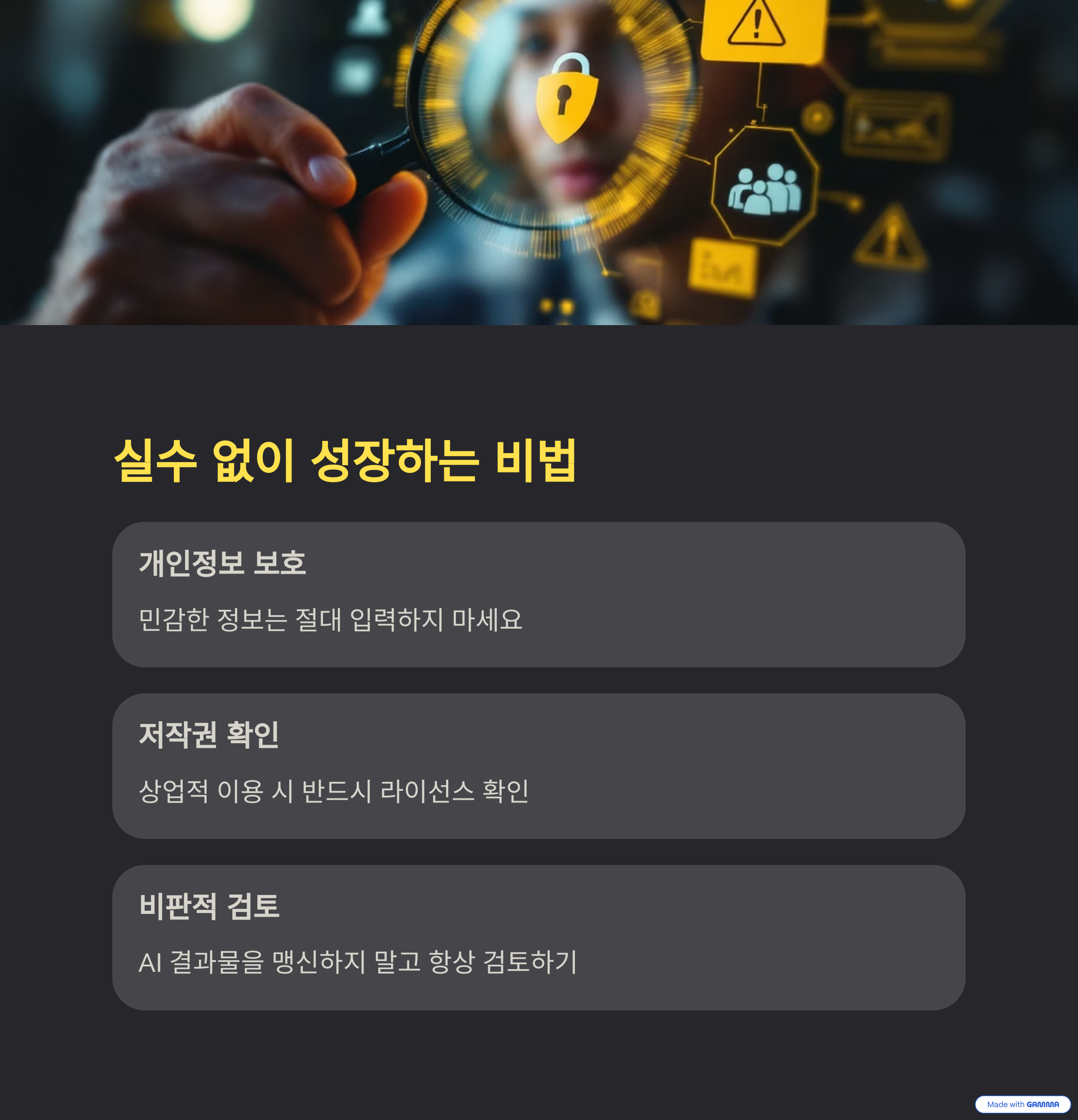 처음에는 AI의 답변을 모두 믿고 그대로 사용할 수 있지만, 반드시 사실 확인이 필요합니다.