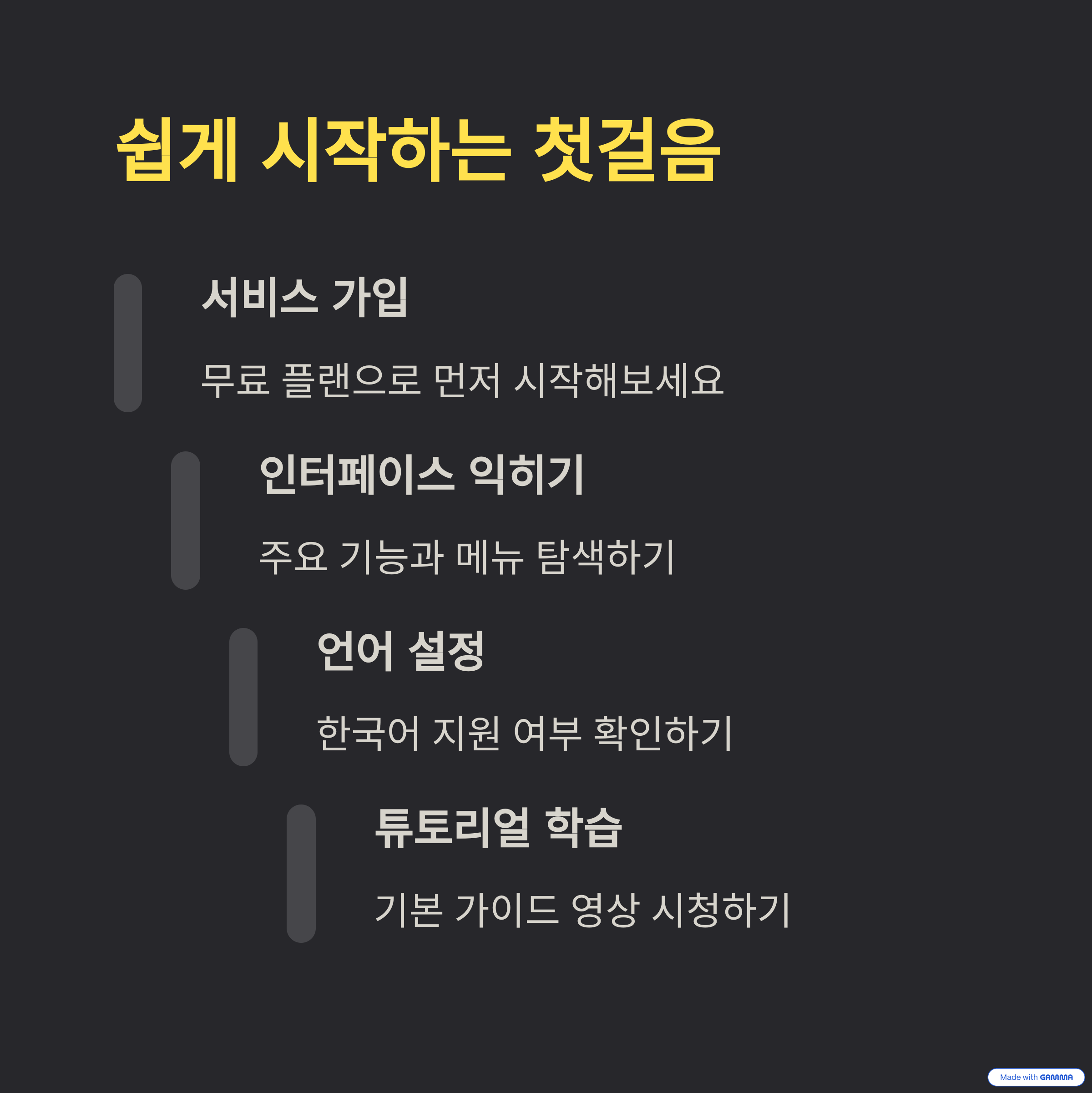 가입 후에는 언어 설정, 사용 목적 선택 등 기본적인 환경 설정을 마치면 바로 이용할 수 있습니다.