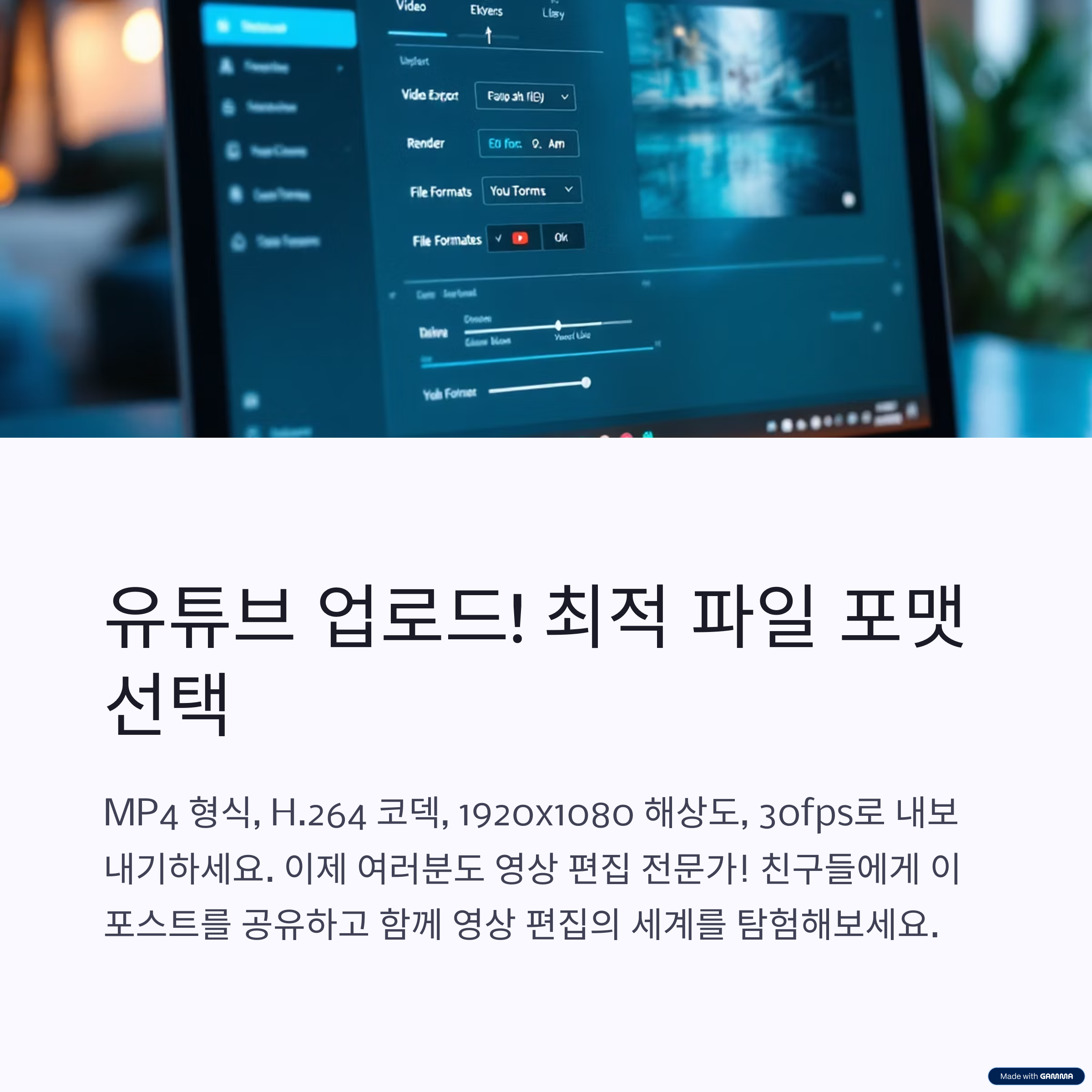 특히 유튜브용은 MP4 + H.264 코덱 조합이 표준입니다.