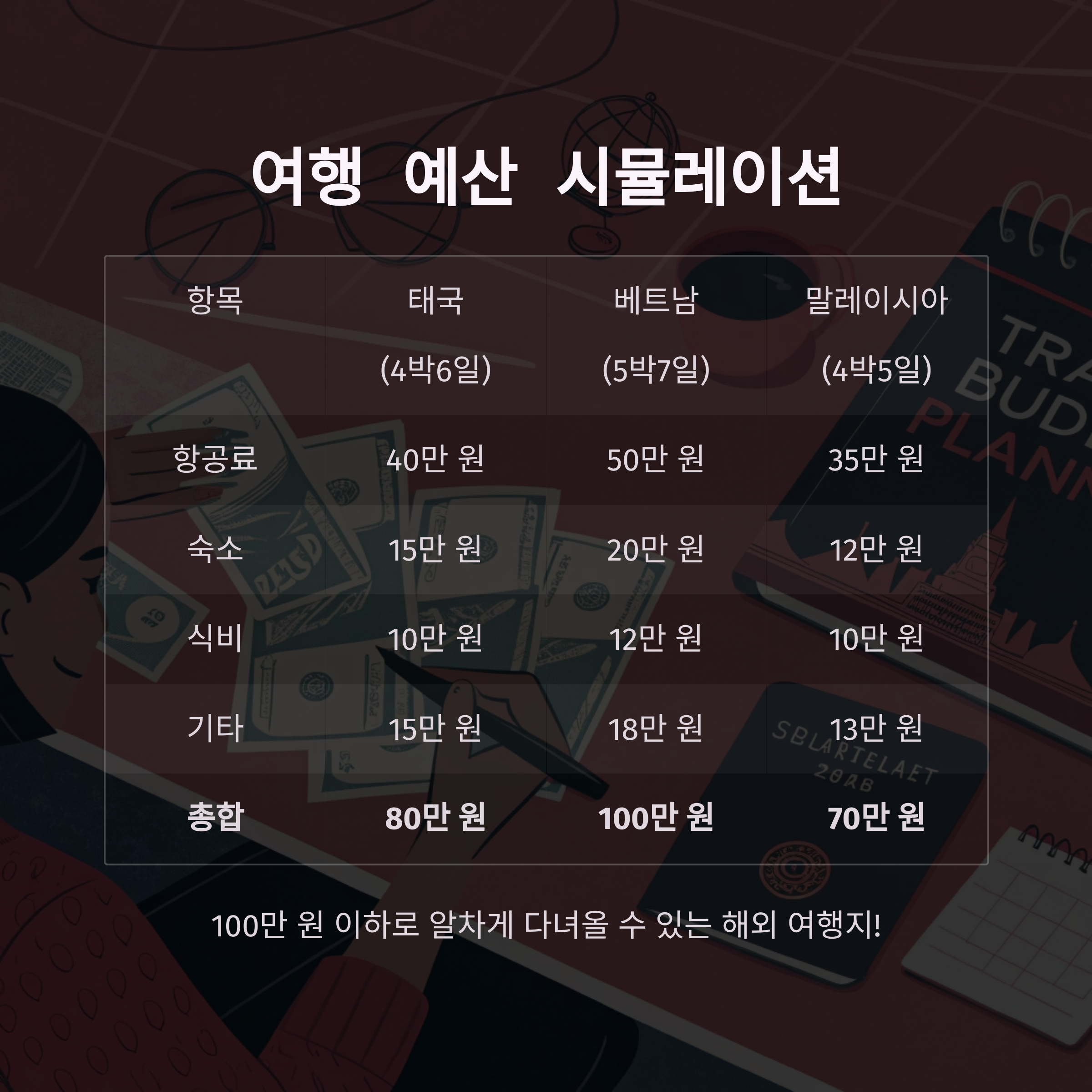 "100만 원 이하로 알차게 다녀올 수 있는 해외 여행지!"