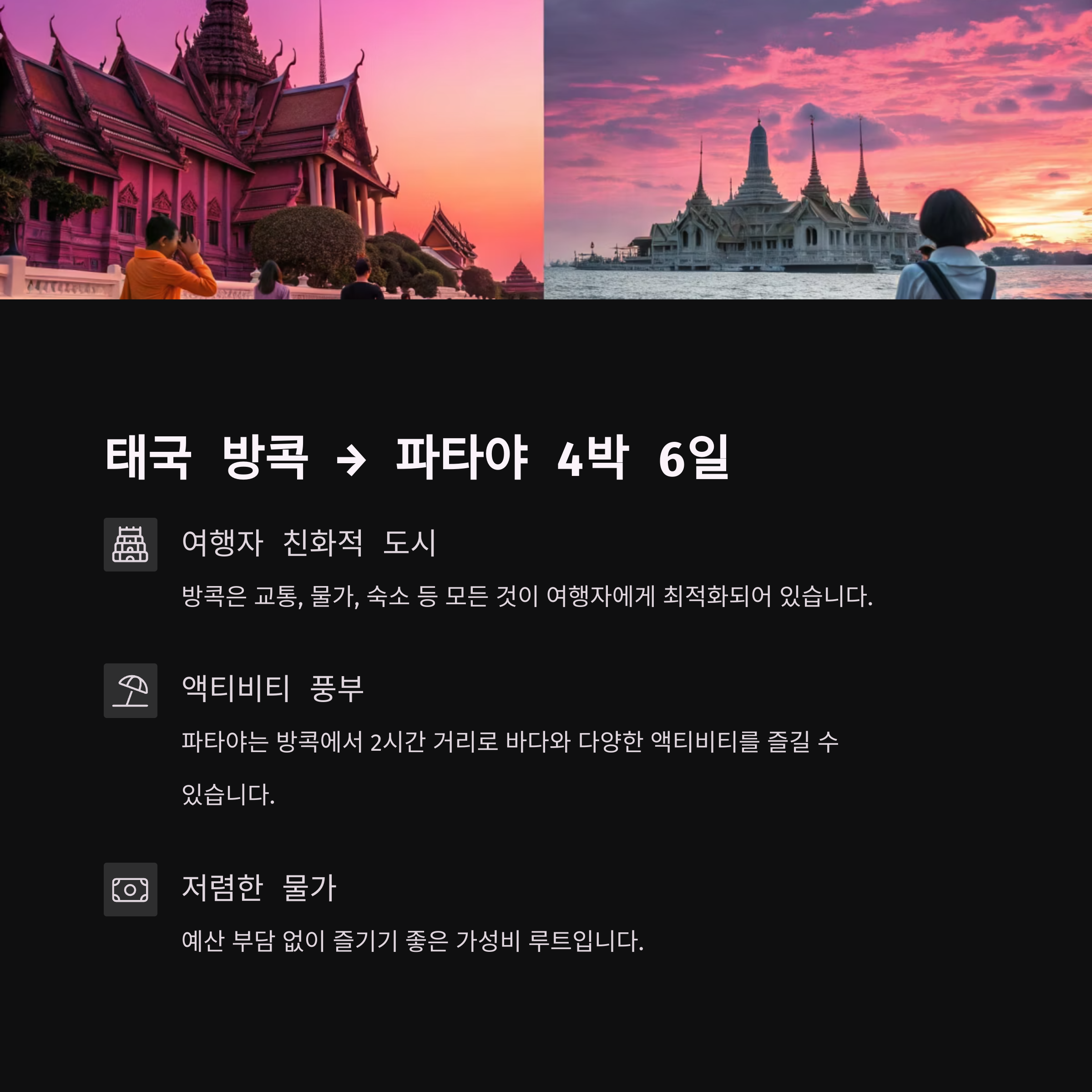 처음 해외여행을 떠난다면 '태국 방콕 → 파타야' 루트를 강력히 추천드립니다.