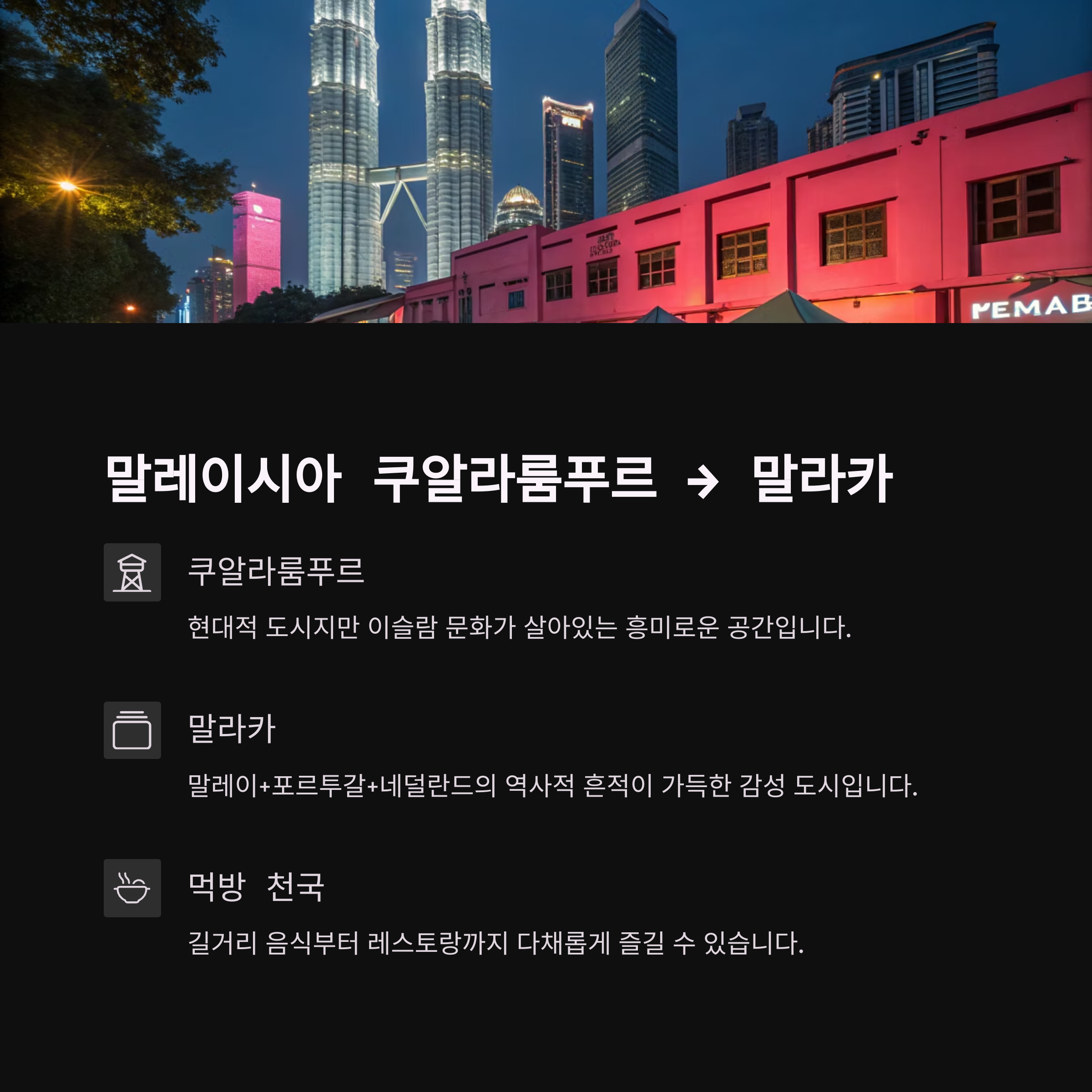 3. 맛집 탐방+유적지 감성 루트 - 말레이시아 쿠알라룸푸르 → 말라카 4박 5일
