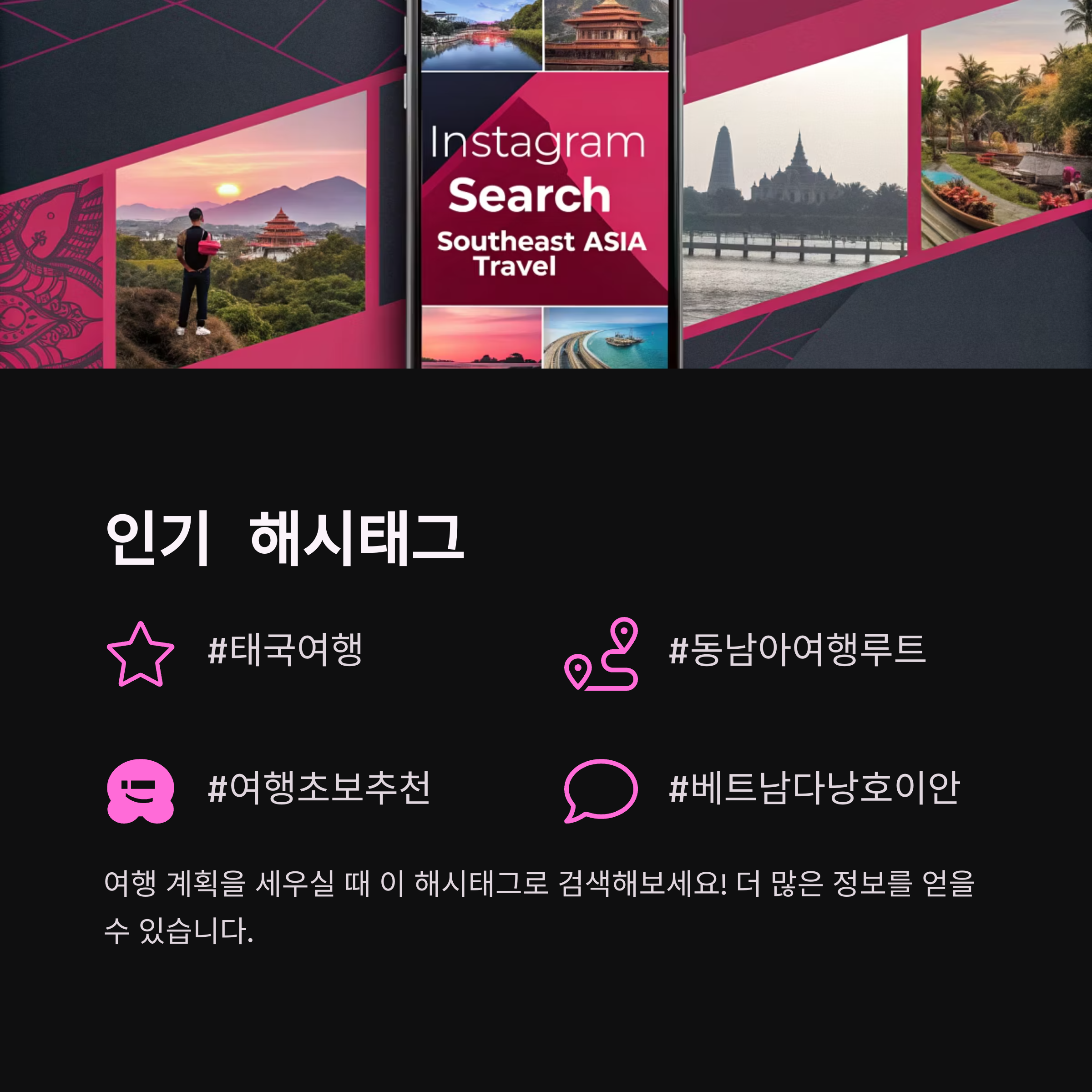 동남아시아의 매력적인 여행지들이 여러분을 기다리고 있습니다. 첫 해외 여행도 이루트들을 따라가면 실패 없는 여행이 될 거예요.