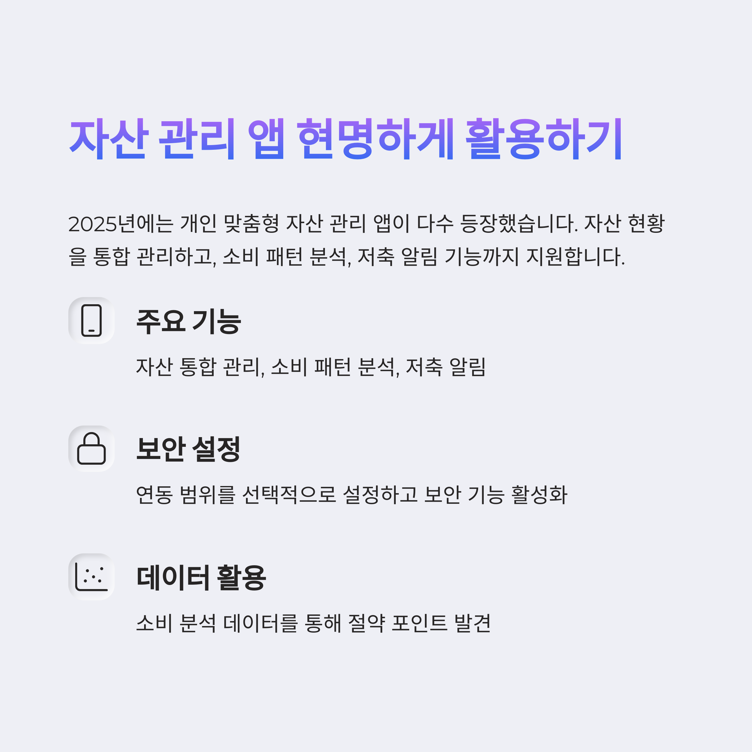 2025년에는 개인 맞춤형 자산 관리 앱이 다수 등장했습니다.