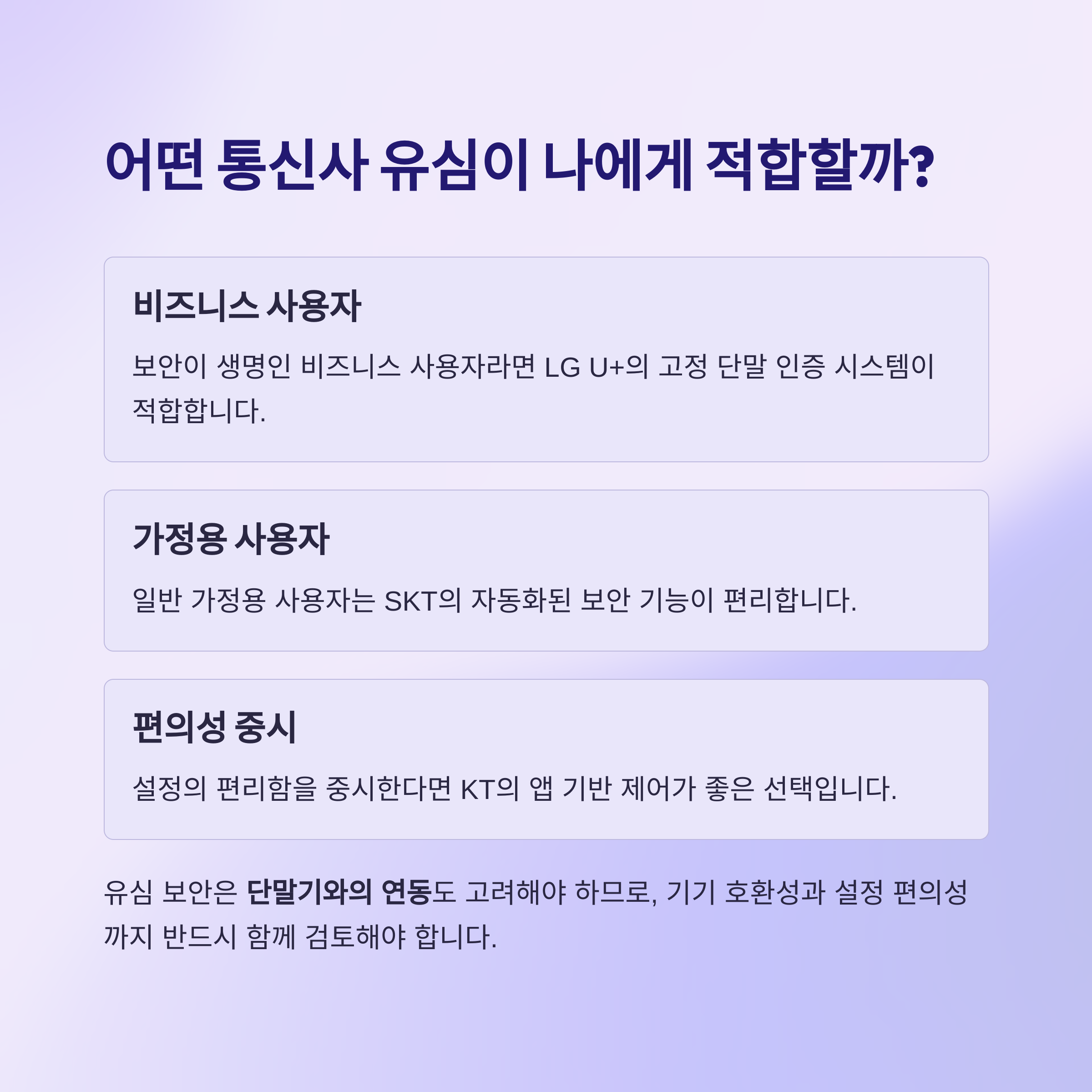 또한 유심 보안은 단말기와의 연동도 고려해야 하므로, 기기 호환성과 설정 편의성까지 반드시 함께 검토해야 합니다.