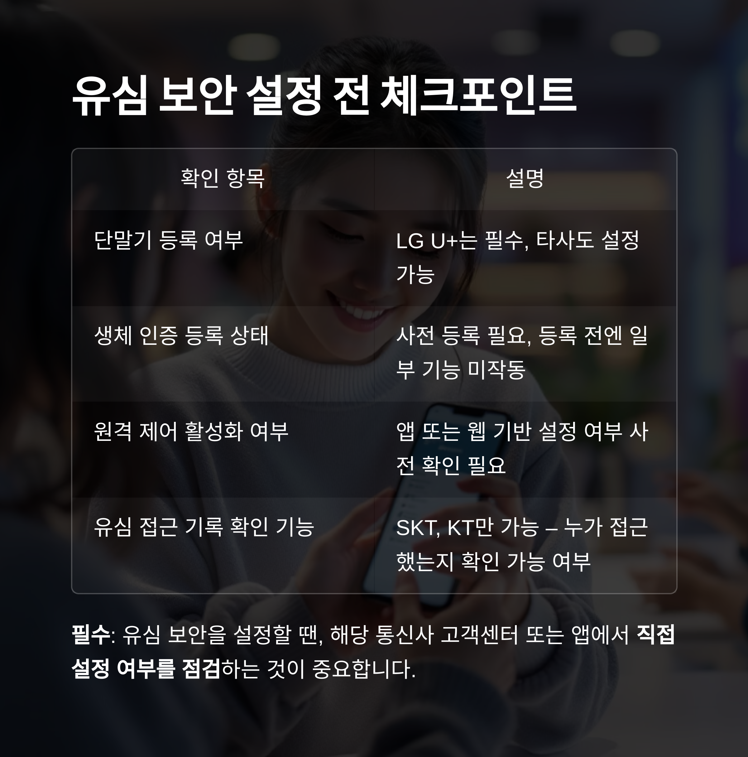 필수: 유심 보안을 설정할 땐, 해당 통신사 고객센터 또는 앱에서 직접 설정 여부를 점검하는 것이 중요합니다.