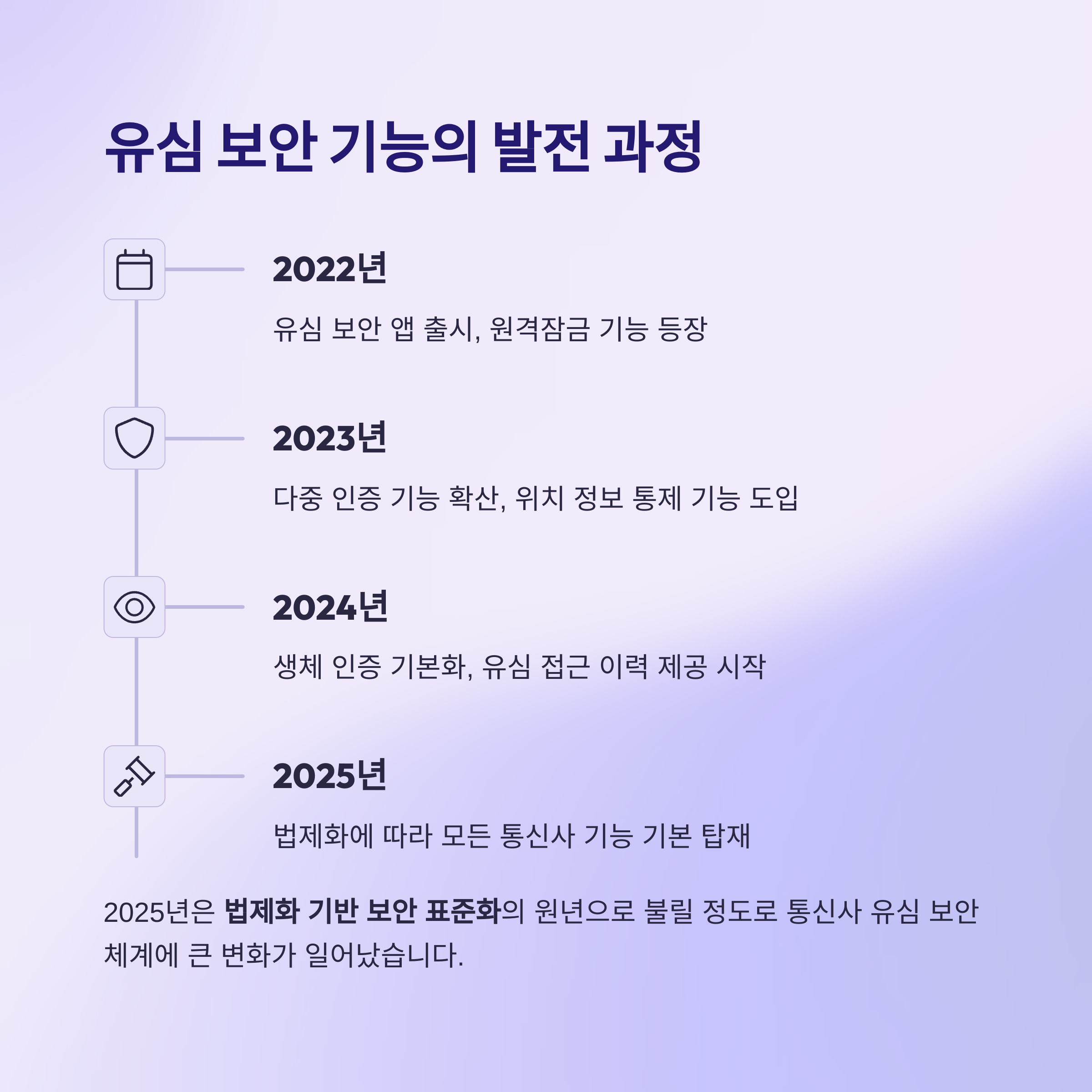 | 2022 | 유심 보안 앱 출시, 원격잠금 기능 등장 |