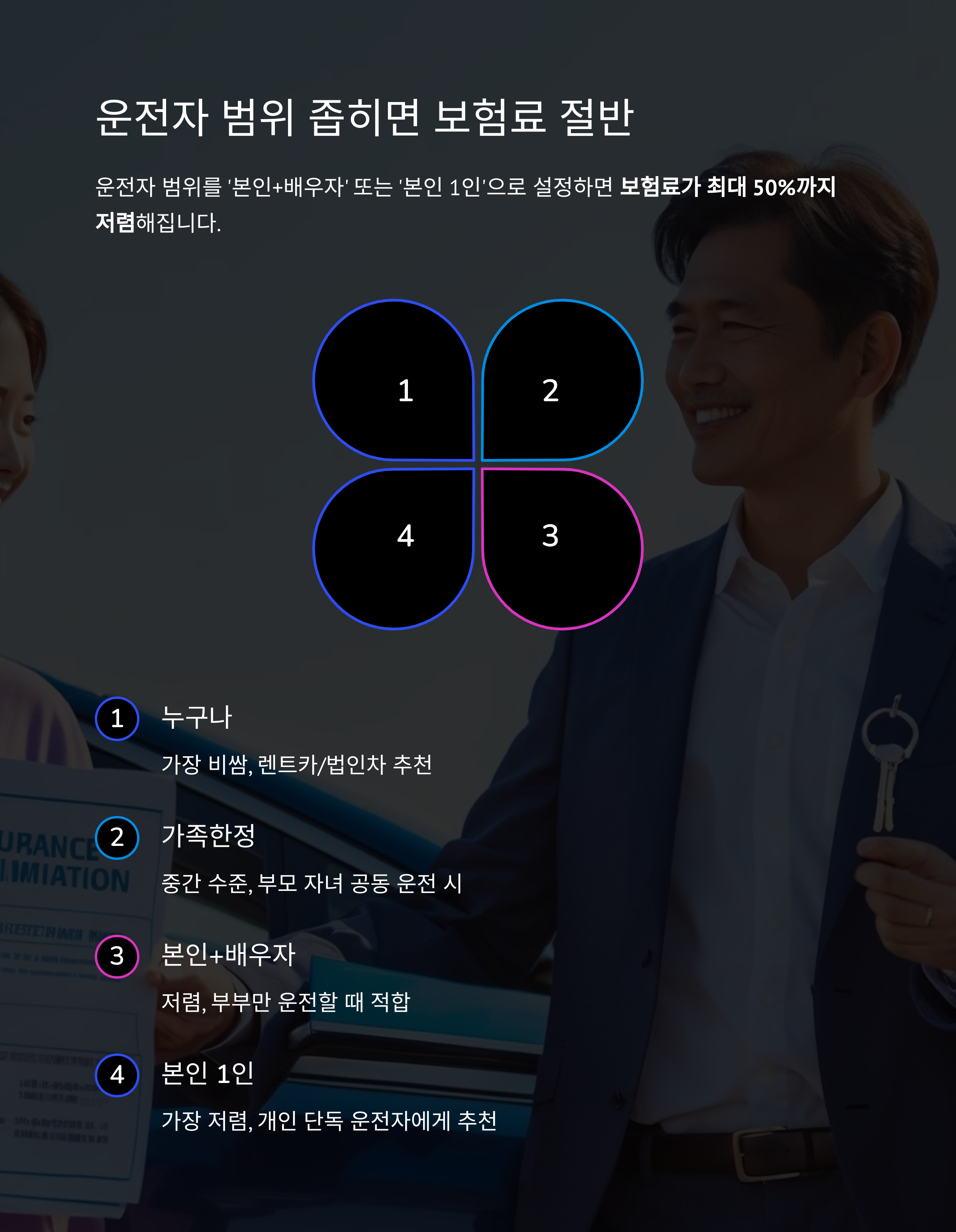 | 본인+배우자 | 저렴 | 부부만 운전 |