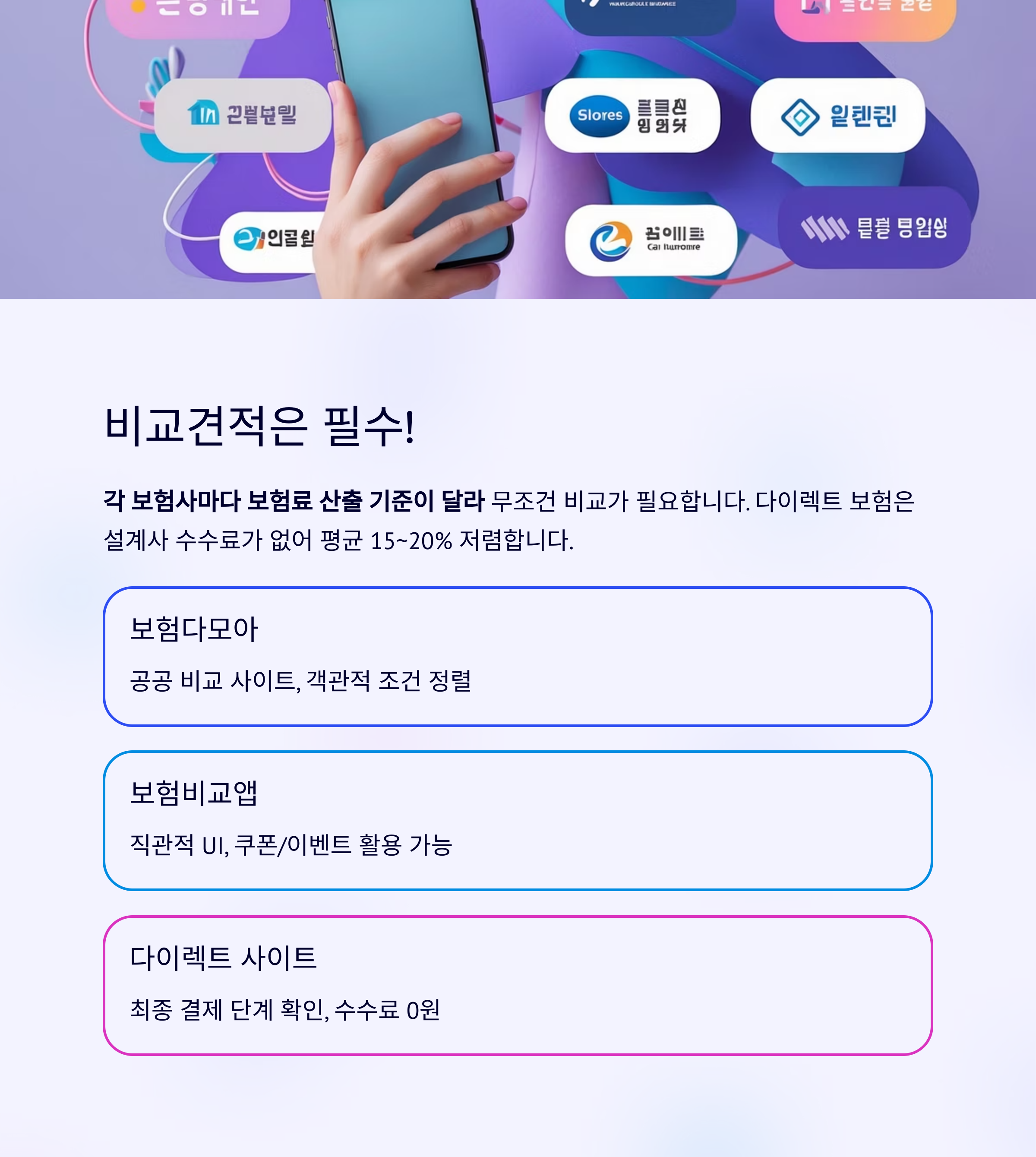 | 보험비교앱(토스 등) | UI 직관적 | 쿠폰/이벤트 활용 가능 |