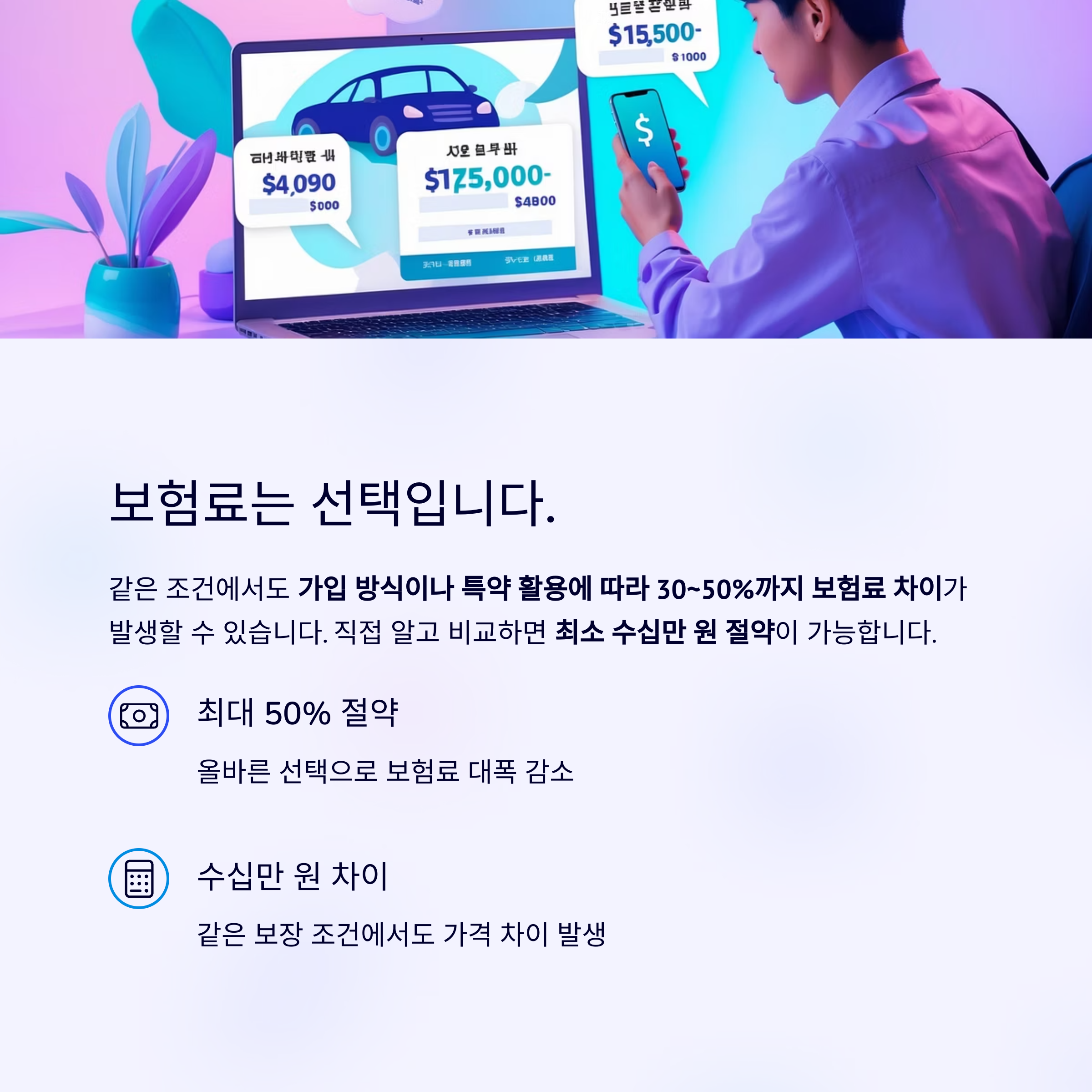 자동차 보험은 의무지만, 보험료는 선택입니다.