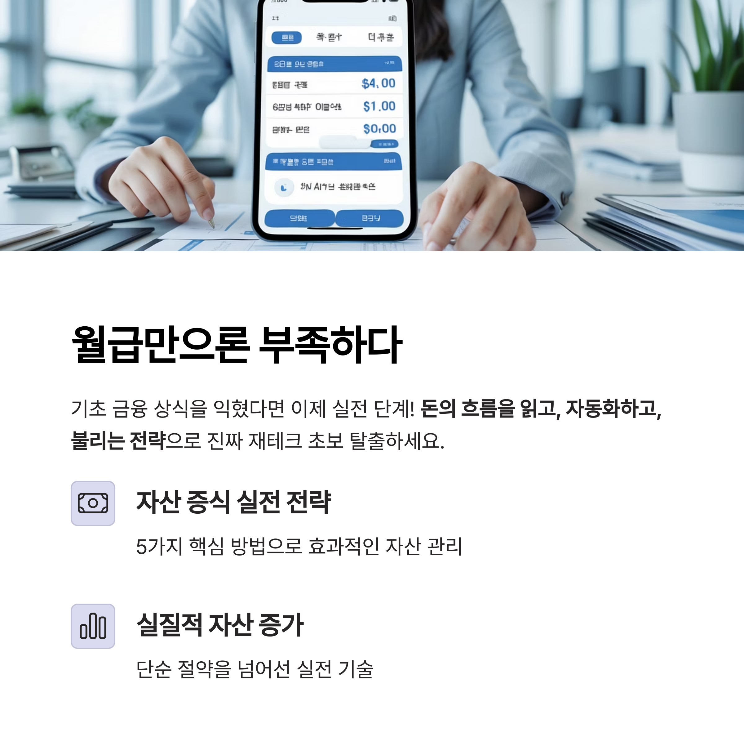 이제는 돈의 흐름을 읽고, 자동화하고, 불리는 전략을 익혀야 진짜 재테크 초보 탈출입니다.