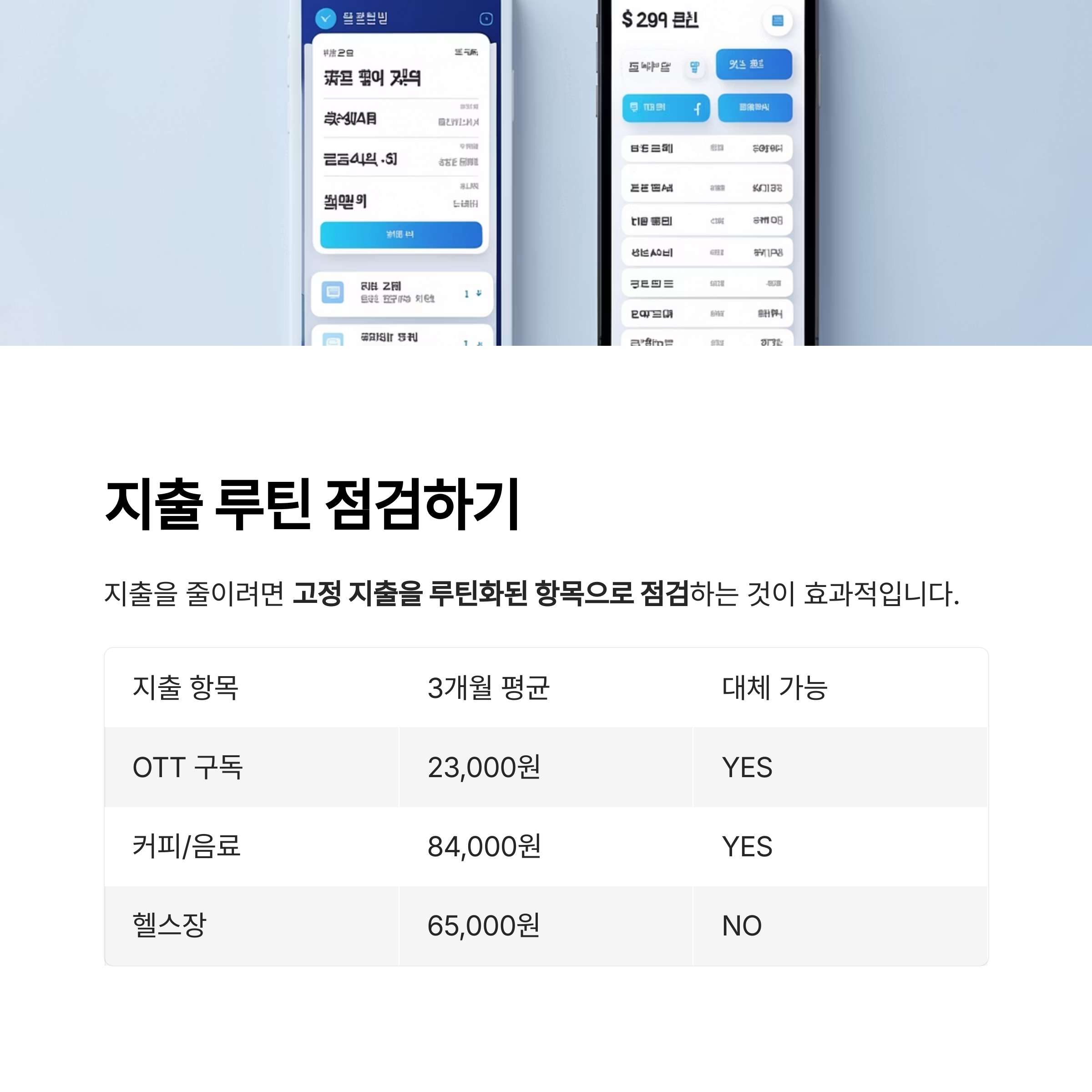 중요: 불필요한 소비는 줄이고, 유용한 소비는 그대로 유지하는 것이 핵심입니다.