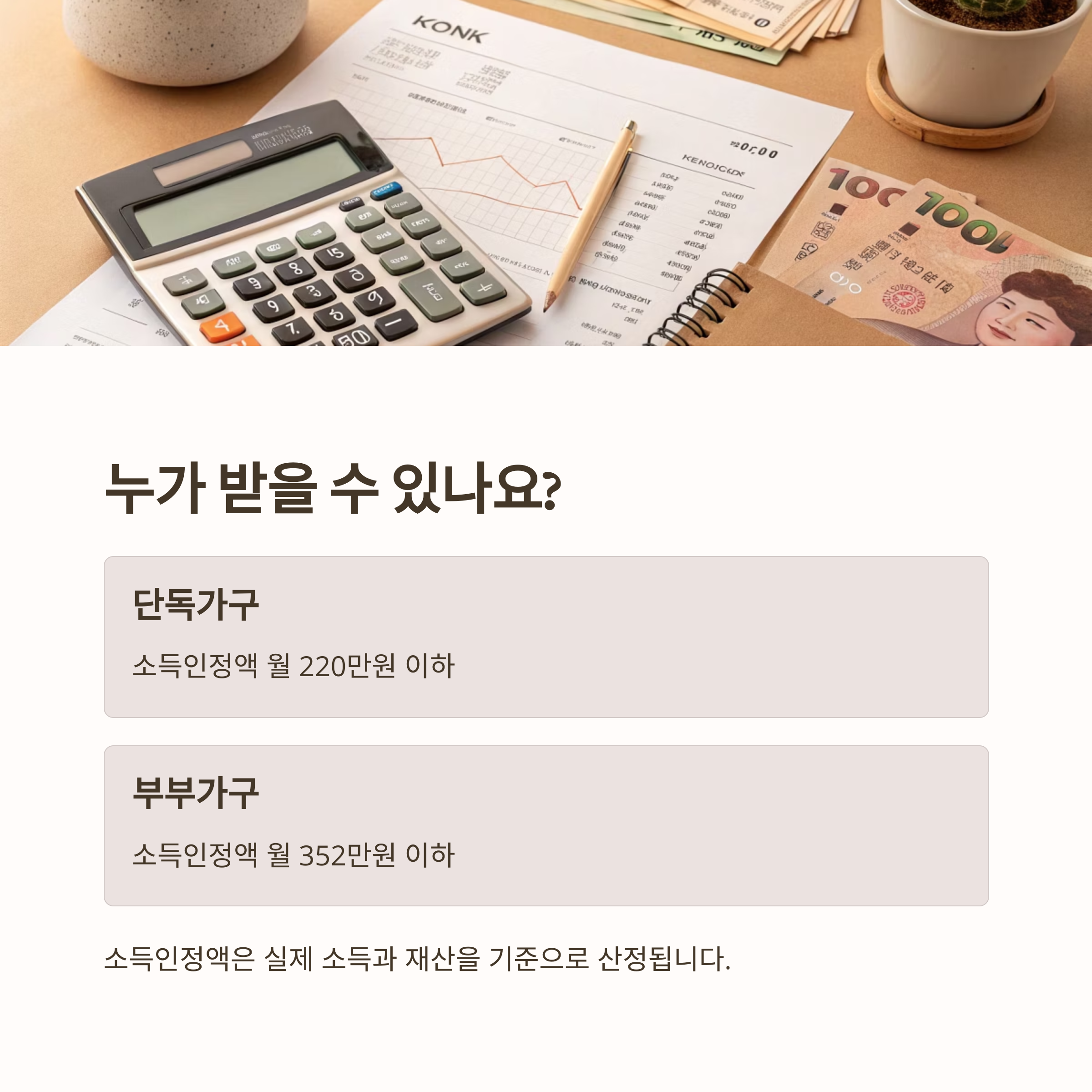 ※ 소득인정액은 실제 소득과 재산을 기준으로 산정됩니다