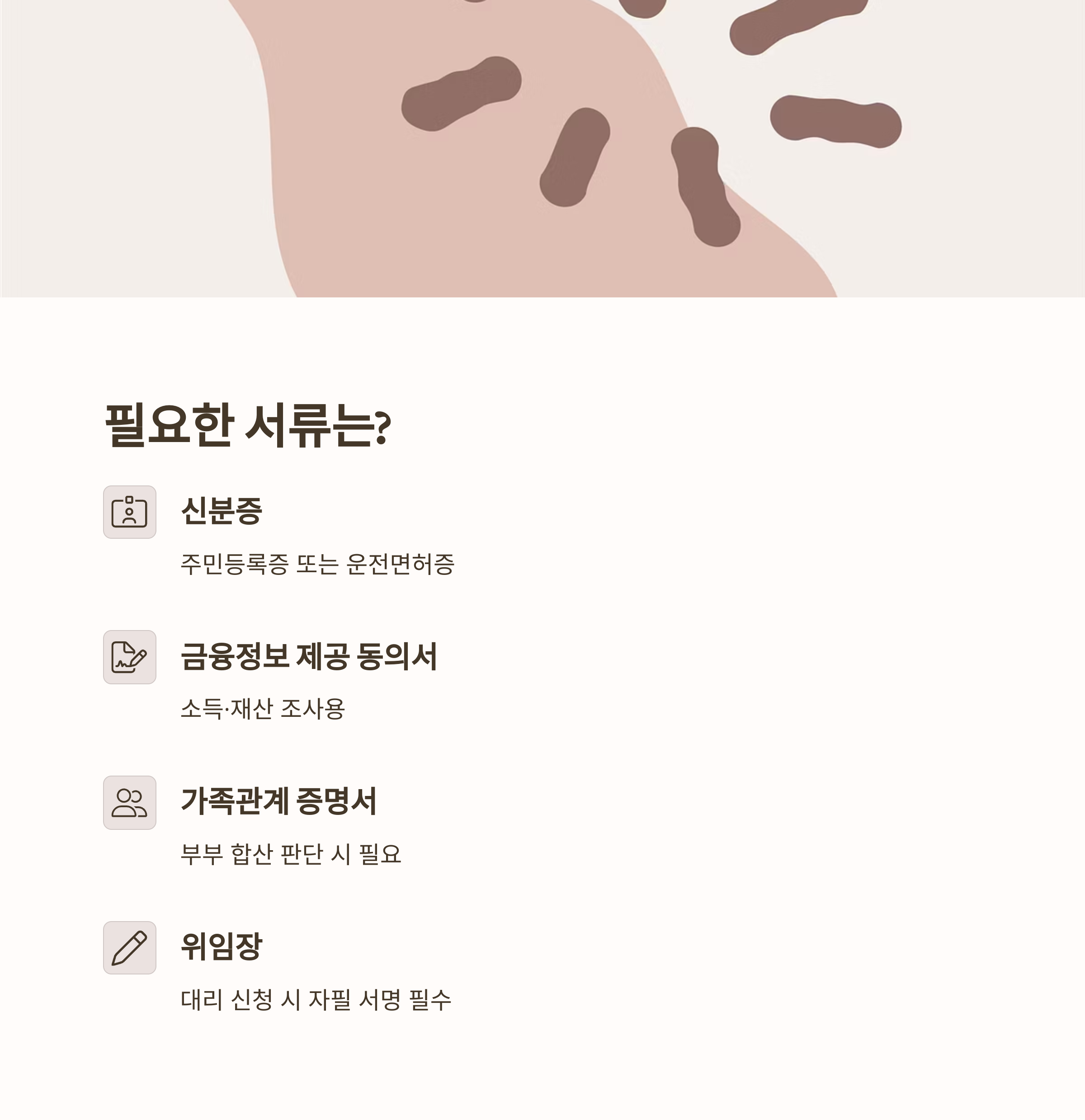| 가족관계 증명서 | 부부 합산 판단 시 활용 |