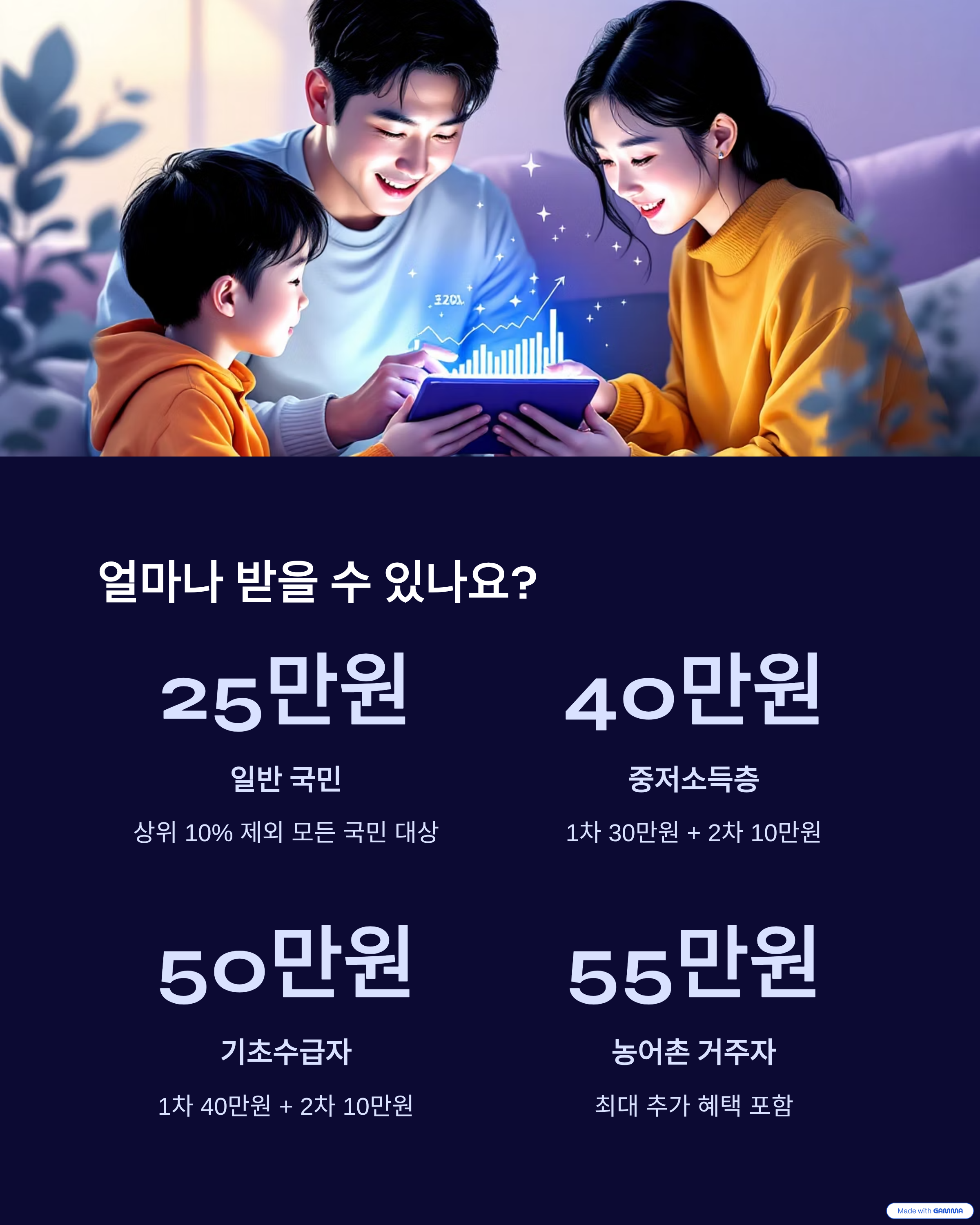 은 소상공인 및 자영업자의 매출 증대를 위한 정책으로, 전 국민을 대상으로 15만 원에서 55만 원까지 소득별·지역별로 차등 지급됩니다.