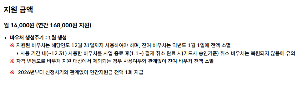 월 14,000원이 바우처 형태로 지급됩니다.