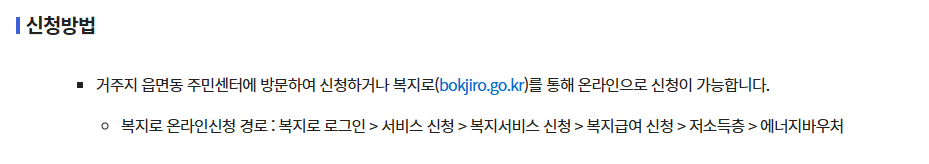 - 온라인 신청: 복지로(bokjiro.go.kr) 홈페이지 이용