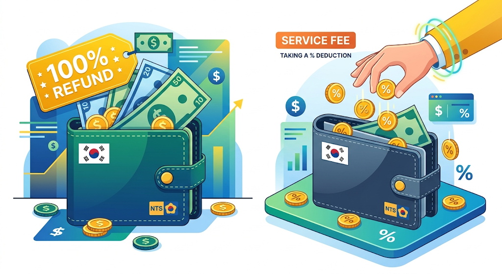 민간 서비스는 이용이 간편하지만 환급액의 10%에서 많게는 25%에 달하는 수수료를 청구합니다. 환급액이 50만 원만 되어도 약 5만 원에서 10만 원이 수수료로 나가는 셈입니다.