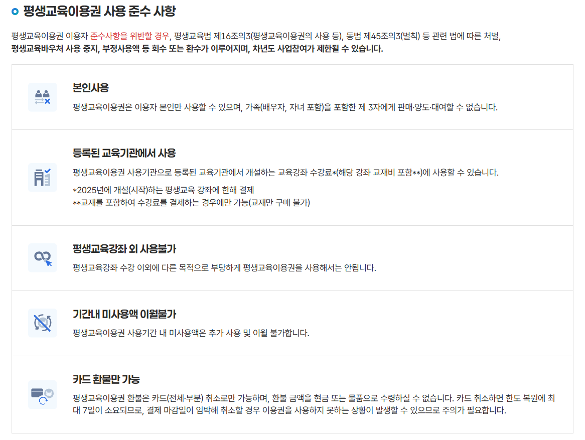 - 평생교육이용권은 등록된 사용기관에서만 사용 가능