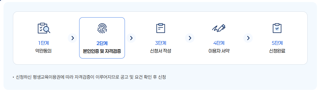 많은 분들이 신청만 해두고 실제 사용을 못하는 경우가 많습니다. 평생교육이용권은 아래 순서로 진행됩니다.