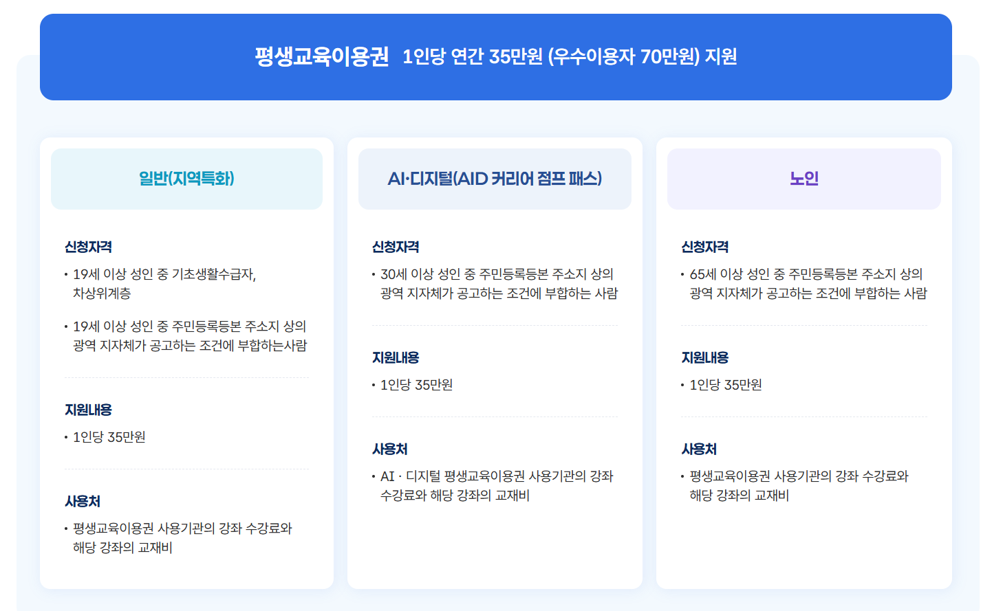평생교육이용권은 단순 지원금이 아니라 “내 미래를 위한 교육 투자 기회”입니다.
