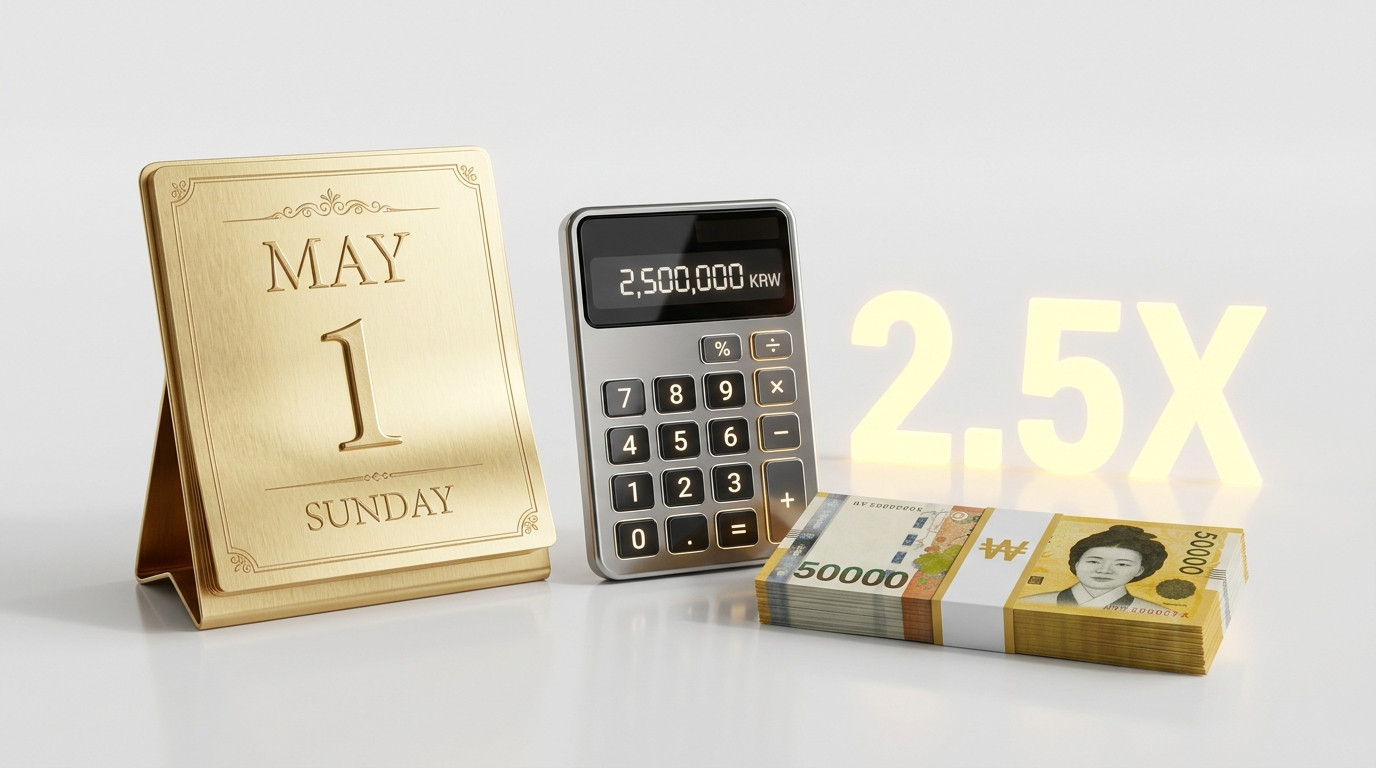 예를 들어 2026년 시급이 10,000원(가정)인 알바생이 노동절에 8시간 일했다면? [10,000원 × 8시간 × 2.5 = 200,000원]을 받아야 정상입니다. 사실 그냥 평일처럼 8만 원만 입금된다면, 당당하게 사장님께 말씀드려야 하는 부분입니다.