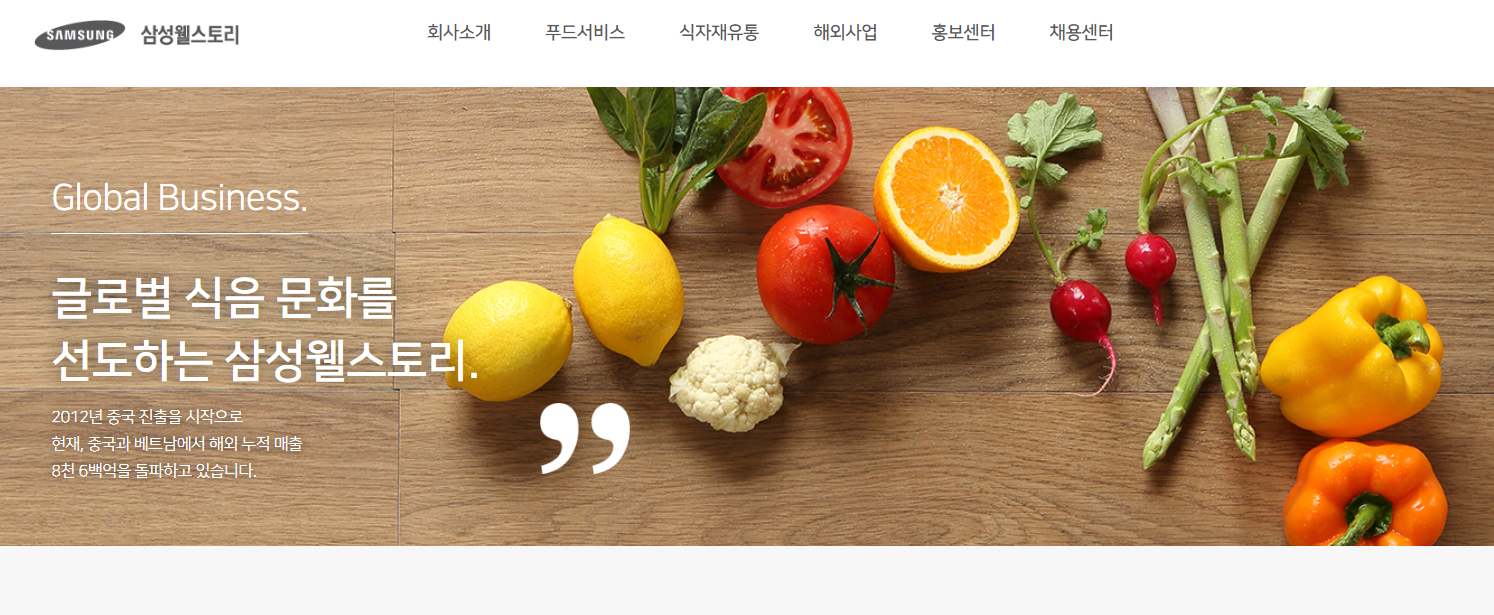 삼성웰스토리는 자연의 신선함이 고스란히 살아 있는 식자재를 빠르고 안전하게 유통합니다. 식자재유통사업 1만 5천여 개의 상품군을 통한 맞춤 식자재 공급하고 있습니다. 전국물류센터(평택물류센터, 용인물류센터, 왜관물류센터, 김해물류센터, 광주물류센터, 제주물류센터) 자연의 신선함이 살아있는 식자재를 안전하게 유통합니다. 전국 6개의 물류센터를 기반으로 일평균 1,000톤의 식자재를 24시간 내 배송하고 있습니다. 식자재의 입고에서부터 보관 및 배송까지의 전 과정에서 적정 온도를 유지하는 최첨단 콜드체인 시스템으로 신선도를 지키고, 에너지 사용량을 절감하는 라우팅(Routing) 시스템을 도입하여 보다 과학적이고 효율적인 유통 시스템으로 산지의 신선함을 고객에게 온전히 전합니다.