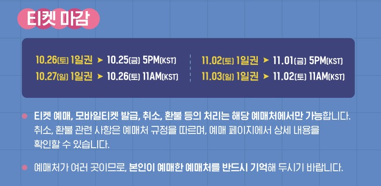 1차 예매일 : 10/26(토) 1일권, 10/27(일) 1일권